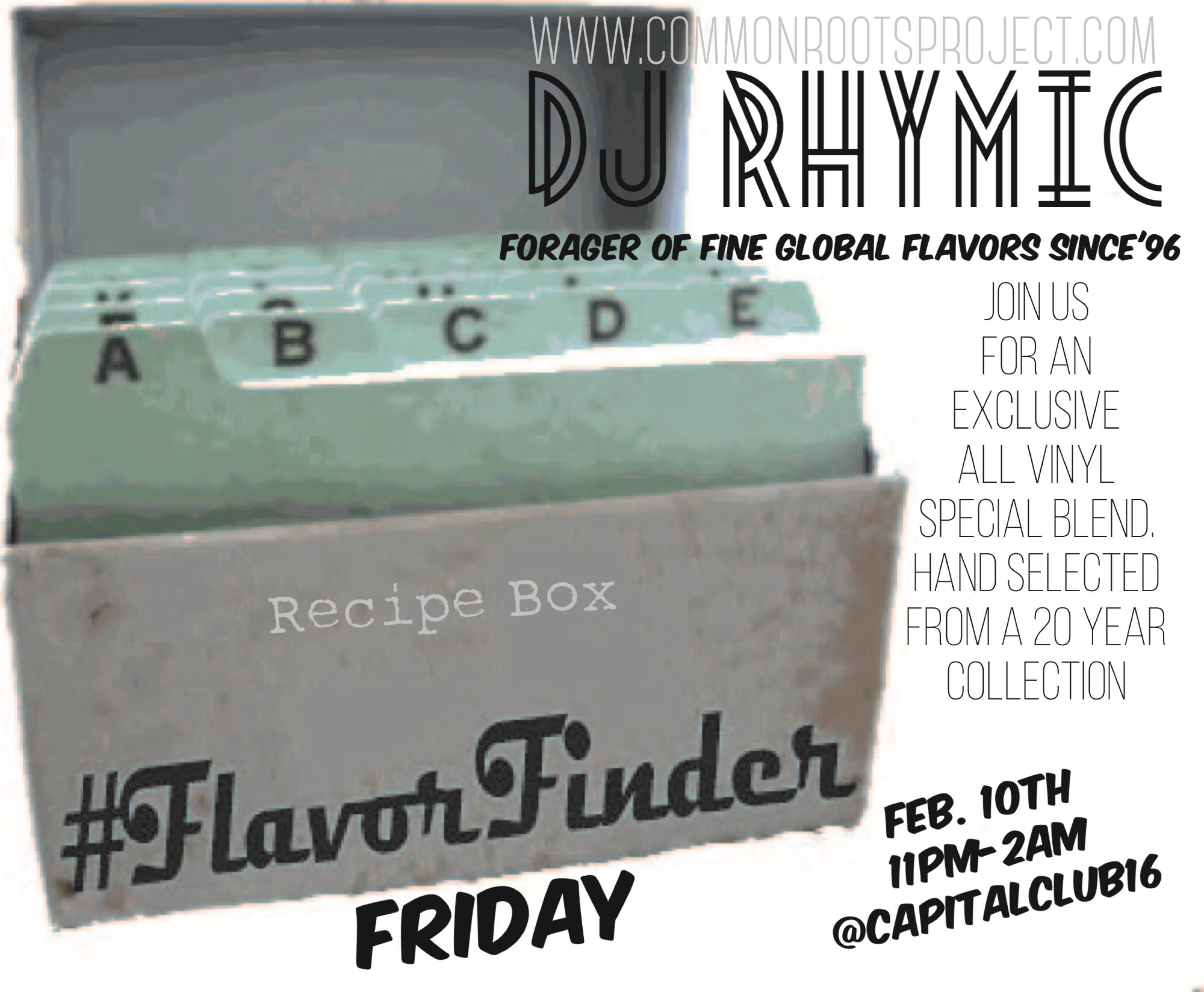 On Friday, February 10th from 11pm-2am at Capital Club 16 of Raleigh, NC the Common Roots Soundsystem will be rocking the wheels of steel.
